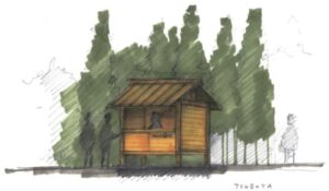 ・体験型建築:抹茶・ほうじ茶、小菓子の提供・販売を通じて訪問者との交流を生む