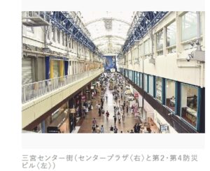 今回の再整備計画において、建て替えが検討されているのは、三宮センター街を挟んで南北に位置する複数の商業ビルです。アーケードの北側では、**「さんプラザ」「センタープラザ」「センタープラザ西館」**の3棟が一体的な建て替えの対象となっています。これら3棟は合計で約1.6ヘクタールの敷地面積を占め、約414者が区分所有しています。個々のビルは以下の通りです。