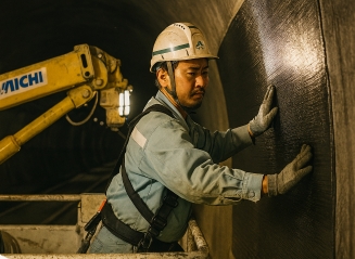 大林組は、日本ファブテック、R&C、日本カーボンと共同で、シート積層工法の新しい工法である「ワンバインドクロス」を開発し、このたび、東北自動車道の竜ヶ森トンネル補強工事に初めて適用しました。