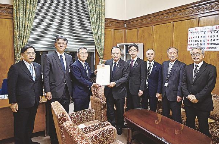 ※梶山国対委員長(右から5人目)に要望書を手渡す今井会長ら全建幹部(いずれも全建提供)。画像は日刊建設工業新聞さまからお借りしました。
