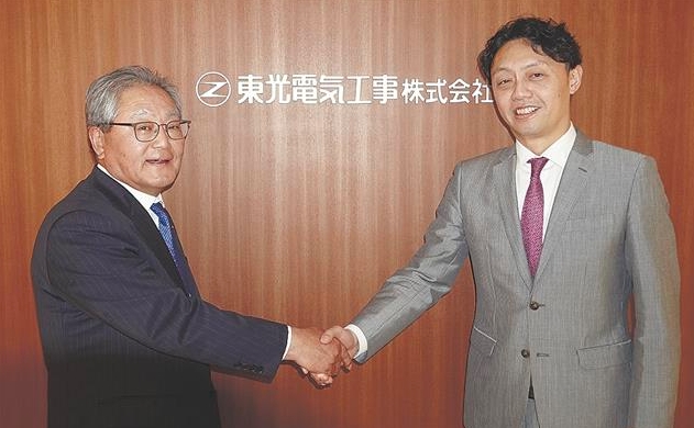 山本東光電気工事社長(左)とAI研究の第一人者である松尾技術顧問