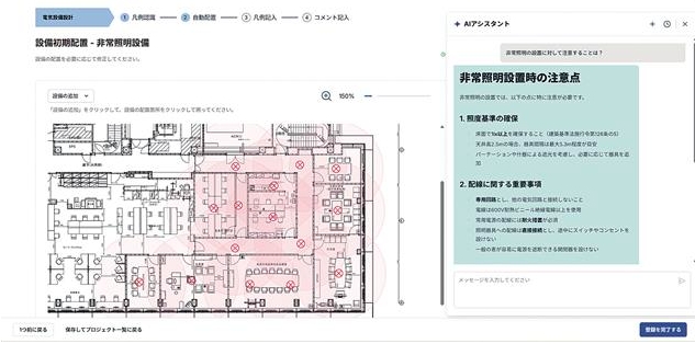 建築基準や関連法令、さらにはビルごとの暗黙的なルールまで考慮したうえで、設備配置案をAIが提示。