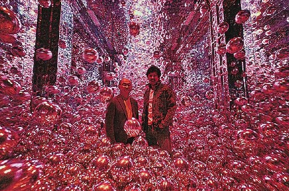 小島社長〈左〉と猪子代表。チームラボ≪変容する連続体≫