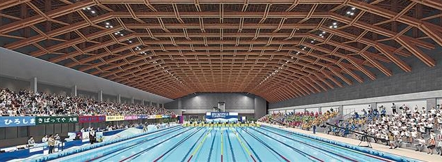 新水泳場は、地下1階・地上2階建て、延べ床面積約1万3000㎡の屋内施設です🏟。