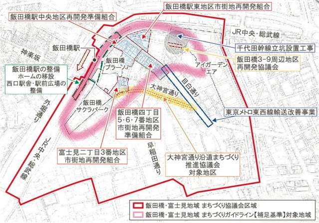 行政区をまたいで再開発が集中しているエリアは都内でも限られており、飯田橋が次世代型の都市拠点へ進化する過程にあることが分かります🚉✨。