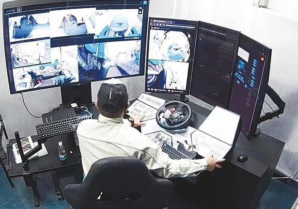 具体的には、前後進やステアリング操作、速度調整といった走行に関わる操作に加え、ホッパーの開閉やバーフィーダの操作、さらにはダンプの誘導といった作業までもが遠隔操作の対象となった。AFにはカメラと通信・制御装置が搭載されており、現場の映像は携帯電話回線を通じて遠隔操作室へ送信される。オペレーターはこの映像を見ながら、離れた場所から的確な操作を行なう仕組みである。
