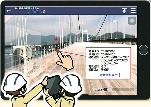 本州四国高速道路会社は、MR(複合現実)技術を活用した新たな長大橋点検システム「BIX-eye(ビックス・アイ)」を開発し、実用化に向けた動きを加速させている。同社は4月から西瀬戸自動車道に架かる大島大橋において、このシステムを本格導入することを目指し、現在は3次元モデルの最終調整段階にある。