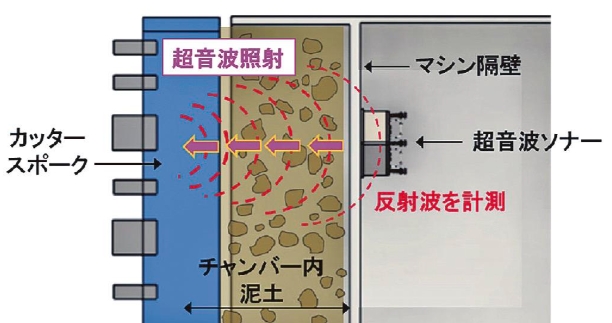 本技術の中核を担うのは、超音波ソナーを活用した音速解析です。具体的には、シールド機の隔壁部分に設置されたソナーから、チャンバー内部に向けて超音波を照射します。