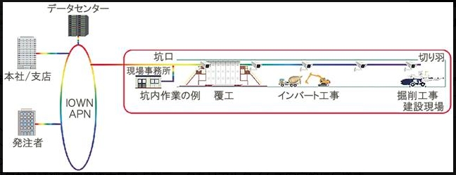 IOWN APN(オールフォトニクス・ネットワーク)を活用することで、複数箇所の同時遠隔監視や点群データの即時分析、高精細映像を通じた遠隔臨場などが可能になる。実運用に近い通信負荷をかけることで、これらの高度な情報基盤と通信ネットワークが現場で実用レベルに達するかどうかを検証する。