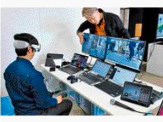 操作者はMRと音声によってAIに指示。画面を操作するポケット・クエリーズの佐々木社長〈右〉
