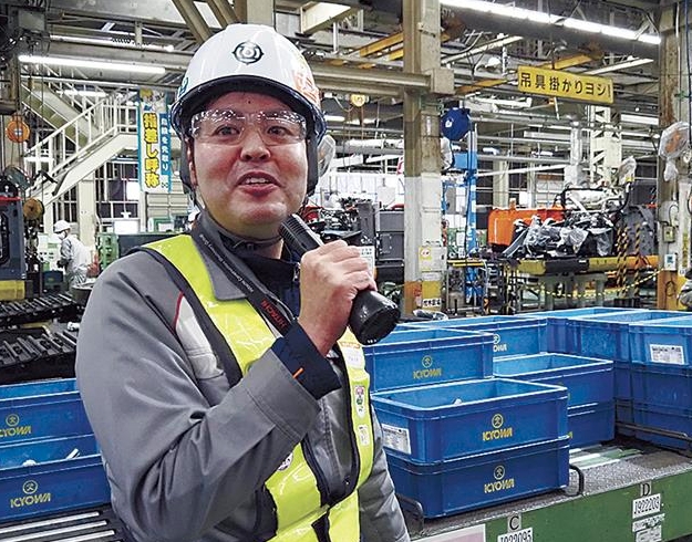 組み立てラインを紹介する伊藤課長