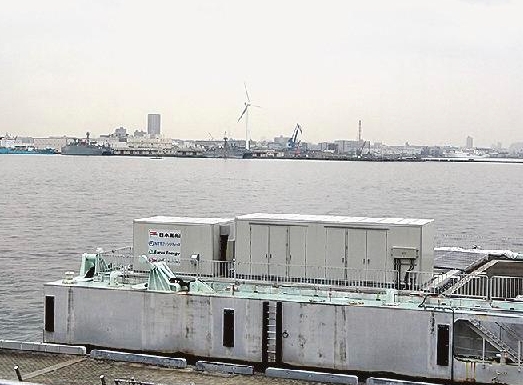 係留施設に設置したコンテナ型DC〈左〉と蓄電池設備
