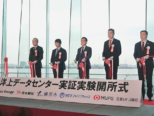 コンソーシアムの代表者によるテープカットで洋上DCが開所