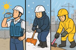 日本の建設現場では、四季の変化が作業環境に大きな影響を与えています。夏の酷暑、冬の低温や積雪、梅雨時の湿気や滑りやすさ、台風シーズンの強風や豪雨など、それぞれの季節がもたらすリスクは多岐にわたります。これらを放置すれば、労働災害や事故の増加につながり、現場の士気低下や人材離れを招きかねません。