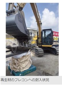 ◦ 積載方法: 再生路盤材をフレキシブルコンテナバック5袋に詰め、日本通運のコンテナ車両に積載。