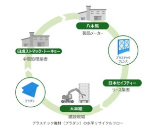 さらに、この水平リサイクルフローは再生品の品質管理と透明性を向上させます。大林組と協力会社との連携により、廃棄物として排出されてから再生品として現場に納入されるまでの全工程が追跡調査可能となります。これにより、再生品の品質が適切に管理されるだけでなく、原材料の環境配慮度や安全性も可視化されるため、現場の皆様は安心して再生フェンスを使用できます。これは、資材選定における信頼性向上にもつながり、安全で質の高い建設工事の実施をサポートします。