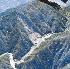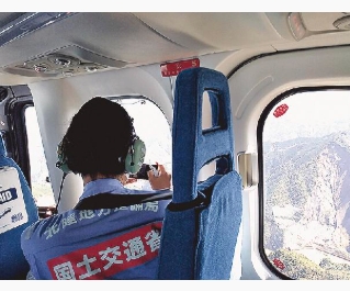 * ヘリコプターを使って河道閉塞が起きた可能性のある箇所を上空から連続撮影。