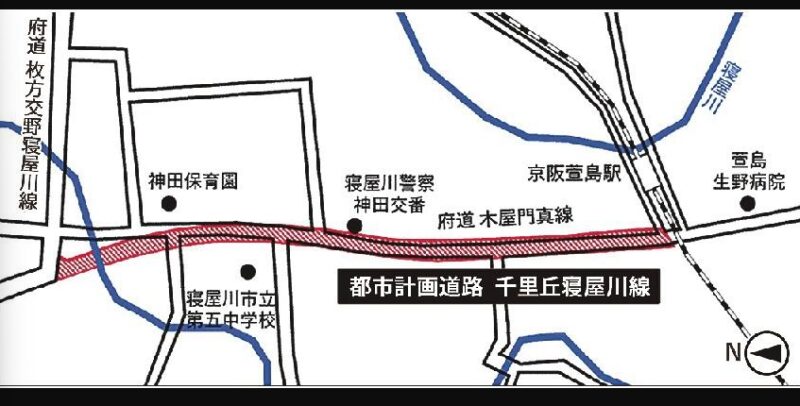 千里丘寝屋川線は、地域の交通円滑化と防災機能の強化を両立させることを目的とした重要な都市計画道路だ。