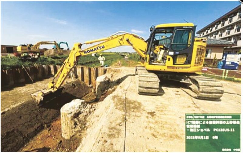 ※ICT建機による崩落斜面の土砂撤去。画像は建設通信新聞さまよりお借りしました。