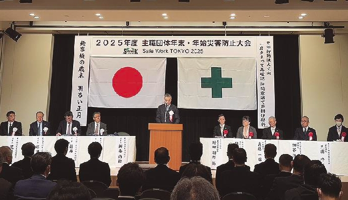 5日、東京都中央区の浜離宮朝日小ホールで2025年度主職団体年末・年始災害防止大会を開いた