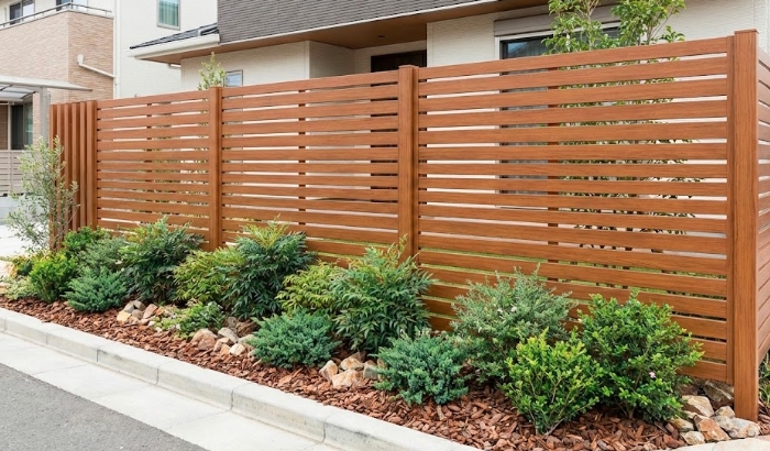 リアルな質感:最近のアルミフェンスは凹凸まで再現されており、近くで見ても天然木のような温もりを感じられます。
