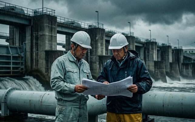 特に近年は、豪雨による浸水リスクを考慮した設計が増えています。排水能力の強化や非常用電源の確保など、“止めない水道”の設計思想が求められています。