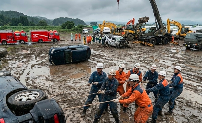 また、宮崎河川国道事務所は宮崎県都城市の道の駅「都城NiQLL」において、災害時に大きな障害となる放置車両の移動訓練を行なった。これらの訓練には各県の建設業協会も関わっており、官民が一体となって災害に対処する体制が試された形だ。特に放置車両の移動は、法的な権限の問題や物理的な作業の困難さが伴うため、平時からの訓練が欠かせない。重機やレッカーを用いて迅速に車両を排除し、啓開車両の進路を確保する手順を、ウェブを通じて参加機関全体で共有・確認したことは、現場対応力の向上に直結する成果といえるだろう。