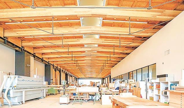 今回もっとも注目されるのが、工場棟の屋根架構です。スパン15.9mというロングスパンを、柱なしで実現しました。