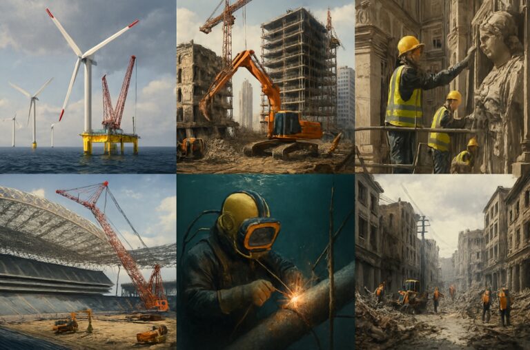 世界の建設現場は、その国の地理や文化、技術水準に応じて様々な顔を持ちます。北欧の海上風力、東京の都市再開発、イタリアの文化遺産修復、アメリカの巨大スタジアム、日本の海底トンネル、台湾の災害復旧──それぞれに最新技術や高度な運営管理、安全対策が投入され、多様なチャレンジを乗り越えています。