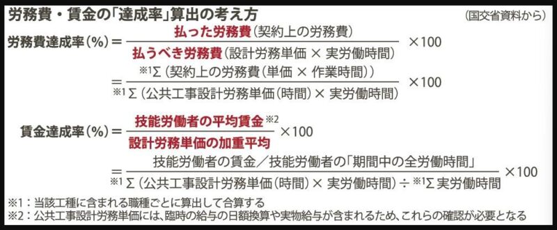 現状、工事の発注額に含まれる労務費の算定と、実際に現場で支払われる賃金との間に乖離が生じているケースが指摘されています。