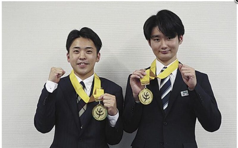 ※きんでん技能五輪金賞を獲得した安立選手(左)と床枝選手。画像は建設通信新聞さまよりお借りしました。
