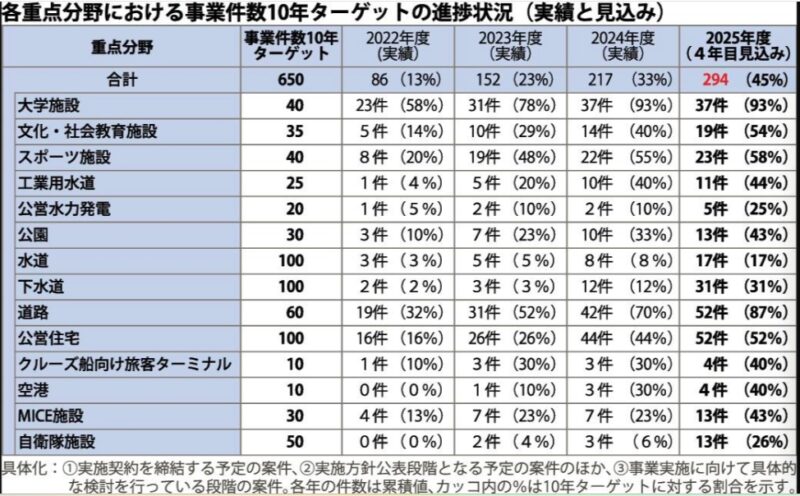 政府は新たに設置したタスクフォースを通じて、これらの事業リスクの検討や目標の再設定、さらには観光や港湾といった分野での民間活力導入を一段と強化する方針を打ち出している。