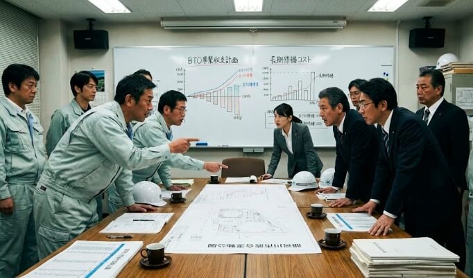 BTO方式の現場では、イニシャルコスト(建設費)の削減だけでなく、ランニングコスト(維持管理費)を含めたトータルコストの低減が求められる。これは「ライフサイクルコスト(LCC)」の考え方だ。従来の入札では「とにかく安く作る」ことが正義とされがちだったが、BTOでは「安く作って、後で修繕費が膨らむ」提案は採用されない。