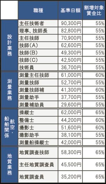 * 設計業務(7職階): 前年度比4.2%上昇し、平均6万2157円となった。