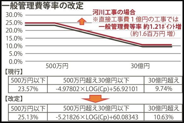 例えば、直接工事費1億円の河川工事では、予定価格が約160万円押し上げられる試算です。💰