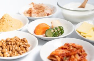 納豆、味噌、ヨーグルトなどの発酵食品は、腸内環境の改善だけでなくセロトニン合成にも寄与する。昼食にコンビニ食や弁当が多い場合でも、納豆や発酵食品を取り入れる工夫が効果的である。