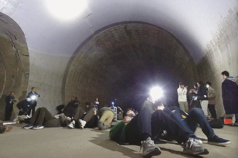 このツアーには子供を含む28人が参加し、通常は立ち入ることのできない地下約40メートルの巨大な管路内を見学したほか、その空間を利用したプラネタリウム鑑賞が行なわれた。