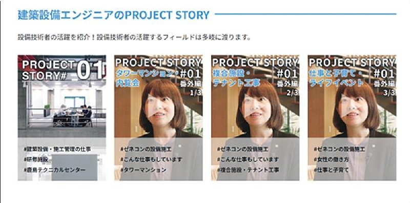 しかし学生から見ると「目立たない」「仕事内容が分かりにくい」というイメージがありました。そこで日建連は、若手技術者の成長ストーリーを軸に、実際の現場を紹介する構成を採用しました。