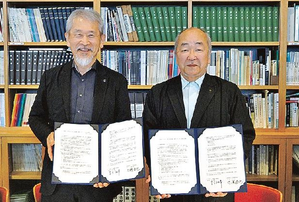 基本合意書を交換する古谷会長〈左〉と佐藤会長